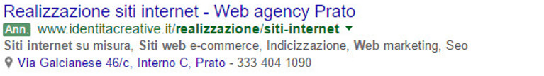 Ogni volta che effettuiamo una ricerca il primo risultato che ci si presenta è contrassegnato da un rettangolino verde con scritto “Ann.”, quello è un risultato sponsorizzato. Per far si che il nostro sito appaia in questa categoria di annunci è necessario acquistare alcune parole chiave (le famose keywords) per essere trovati quando gli utenti le ricercano. Il nostro sito apparirà come annuncio sponsorizzato, solo quando le keywords che abbiamo scelto verranno ricercate.